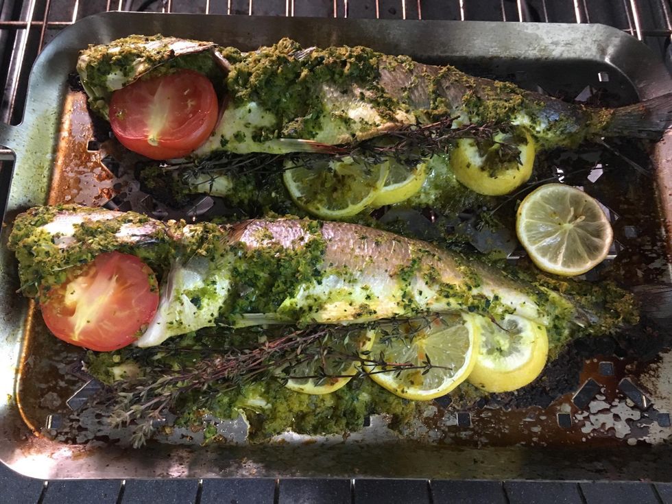 I bought the fish at Whole Foods and had it cleaned and butterflied.