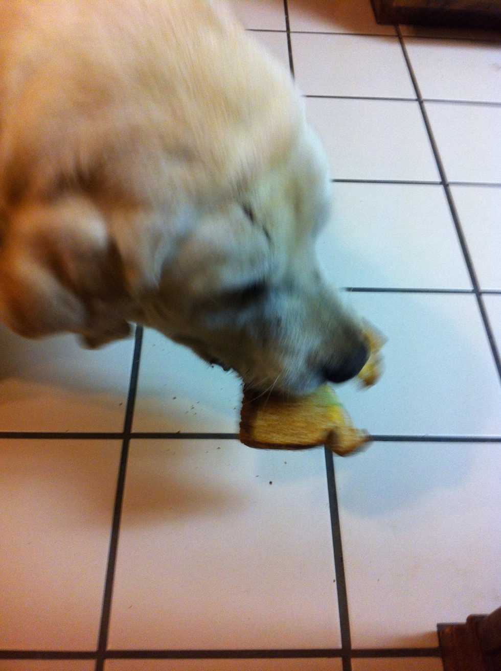 Pin la sandwich en el Plato. Corta la en dos pedazos