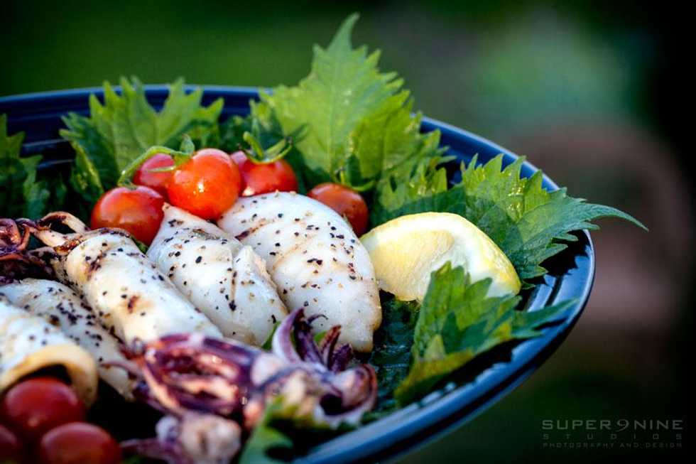 Heat the grill on medium high, and place squid to cook, approximately 2 to 3 minutes, or until tender.