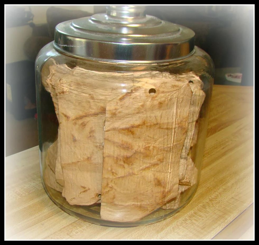 A jar full of little blank canvases all ready for your art. Use them to make gift tags, tag mini albums, or tag art. Remember the last few steps were optional to achieve that old look. Have fun!