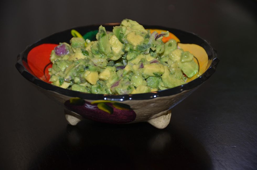 Tip- do not mash the avocados.. Chop them. You can add more lemon juice if needed.