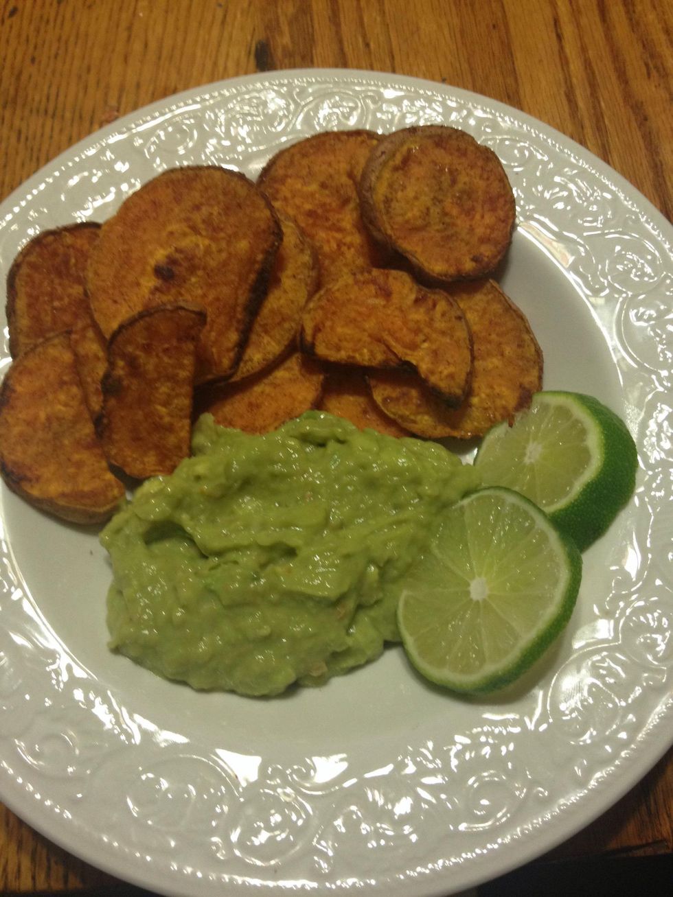 Place guacamole in plate, squeeze lime juice over it, add chips and enjoy! 😊