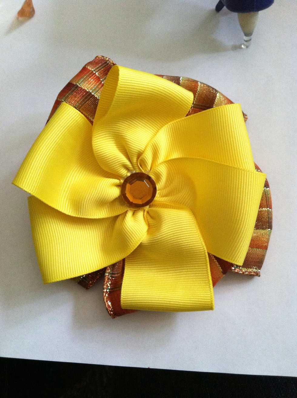 Cut your ribbon to your desired length, in a trapezoid shape. You will need 6 pieces. These were about 2inches at its longest side.