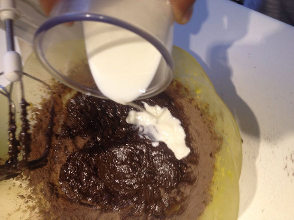 Them add 2 spoons at time in the egg whipped moxture and add some milk