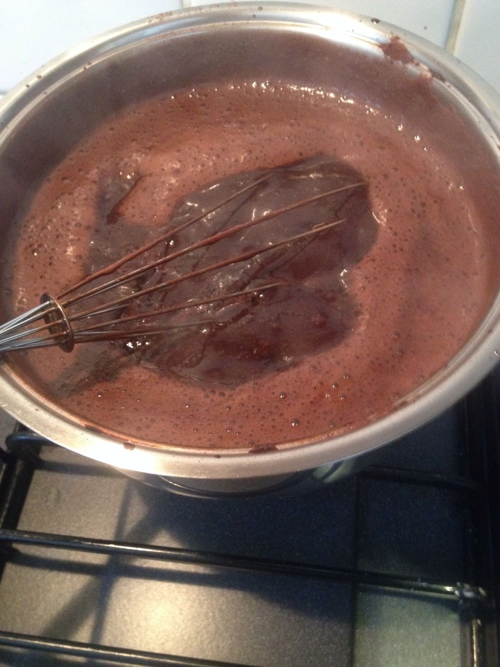 Then the mirror chocolate cream of the top of the cake! Mix the water with the milk
