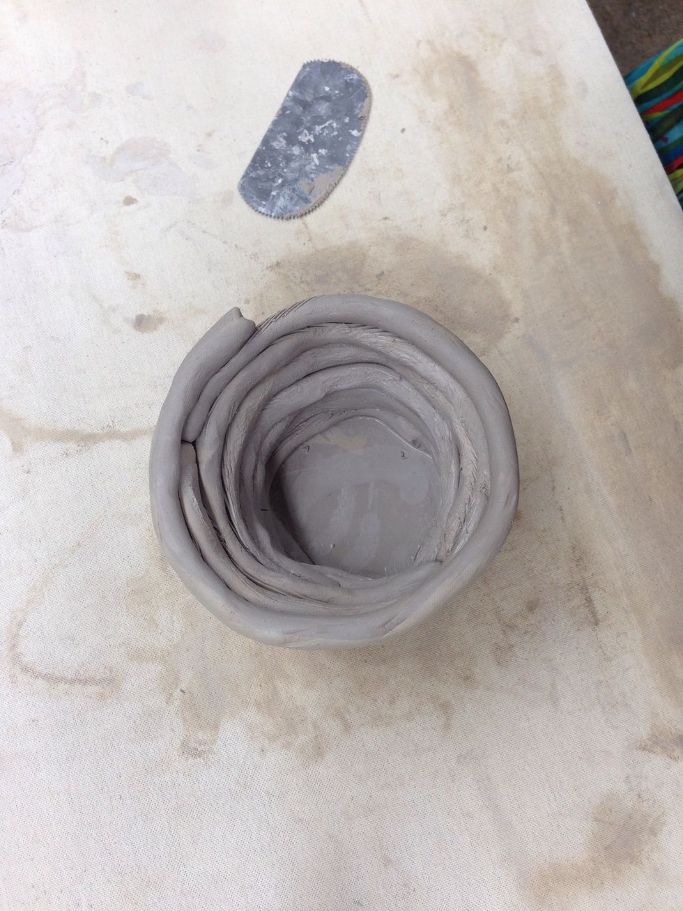 If you want your pottery to curve inward, place the coils on the inner edge of the pot.
