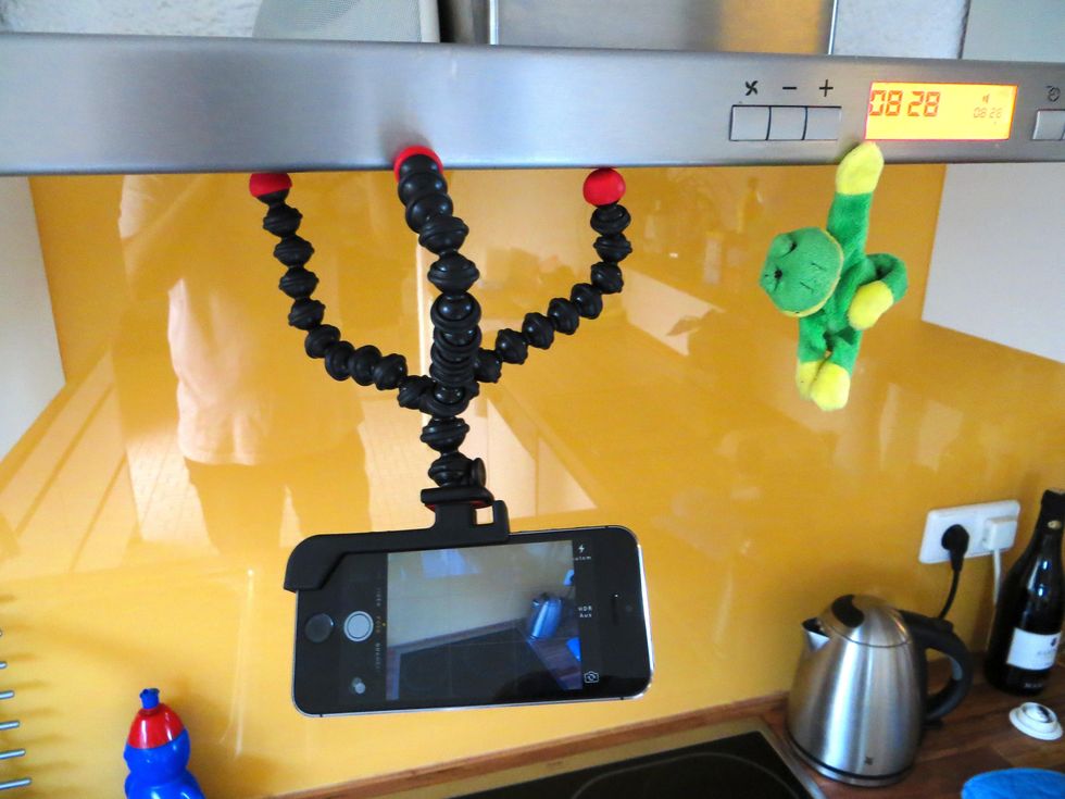 Your next cooking guid will be great as well. Stick it to the cooker hood and film your every move with the iPhone.