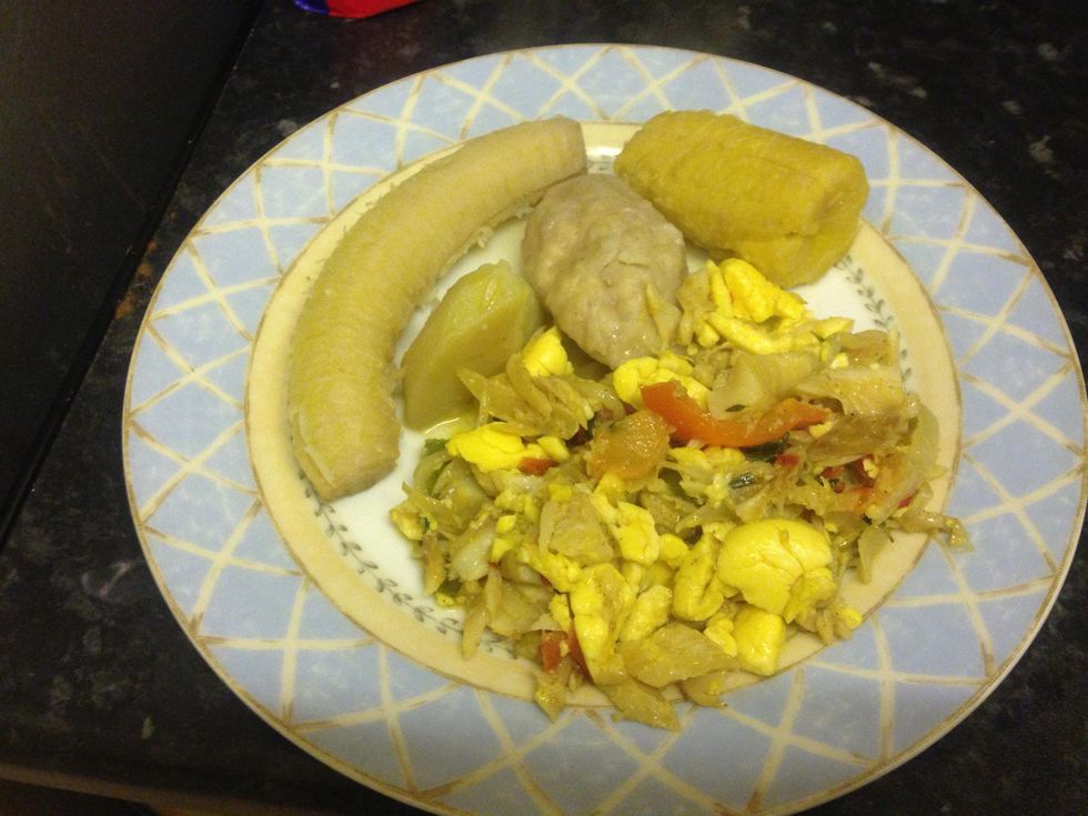 And there you go. Hard food goes perfectly well with ackee and salt fish.
