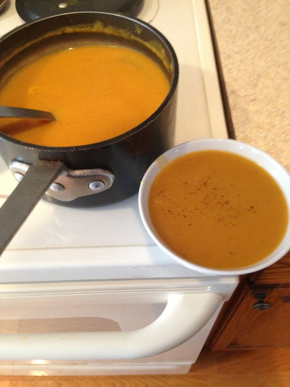 Pour the soup in to a blender. Blend until it is smooth.