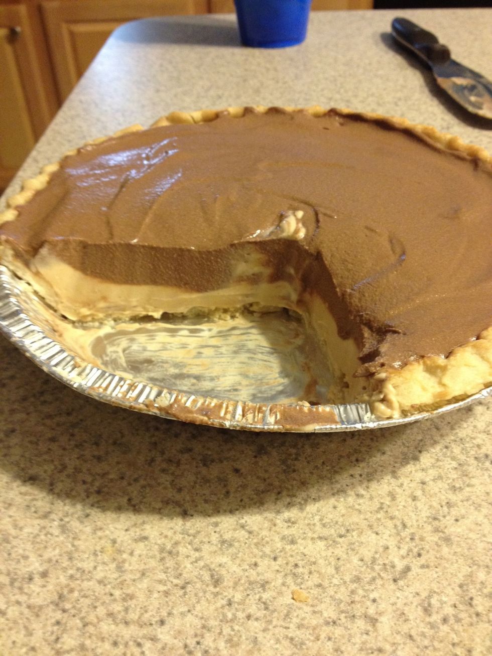Spoon the peanut butter mixture onto the already baked pie crust. Smooth it out with a spatula or spoon.