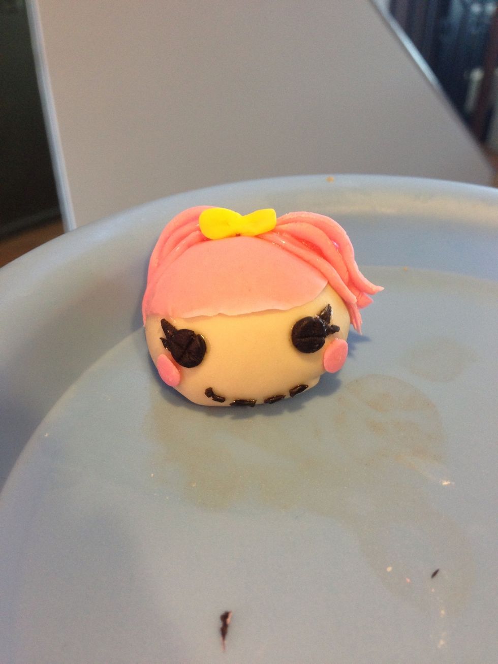 Wrap the ball to form lalaloopsie face. Prepare pink fondant for her hair