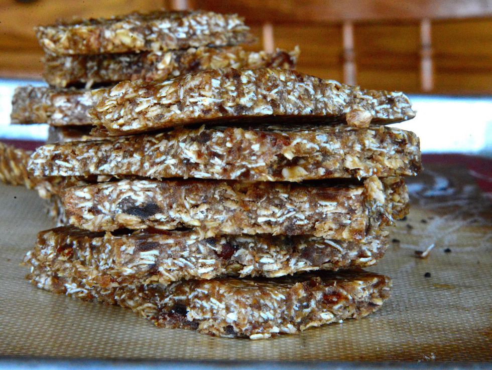 Chill in the fridge for an hour before cutting into 12 bars!
