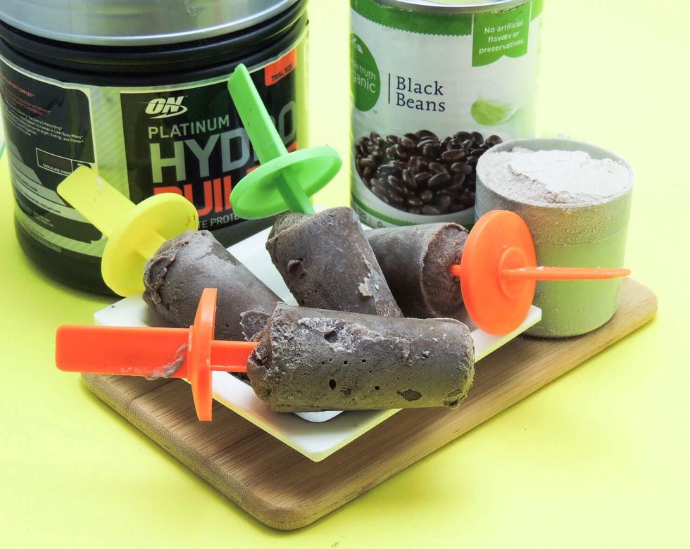 And that's it :) They taste really good, like real chocolate popsicles, but only 57 calories, high protein, high fiber (thanks to beans), low sugar, low fat and low carb
