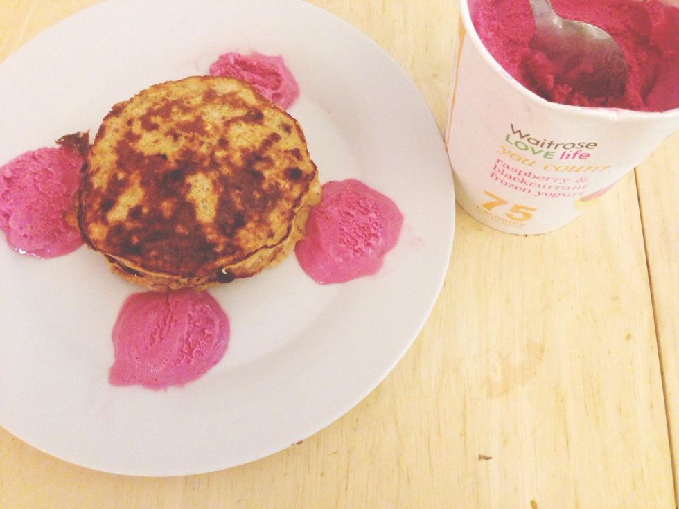 Stack on a plate and serve with fruit or frozen yoghurt. I used Waitrose love life (low calorie) frozen yoghurt with raspberry and blackcurrant. Enjoyπ