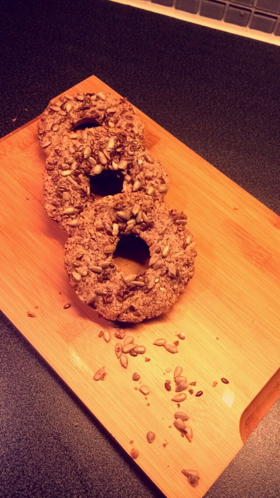 Ingredients:gluten free flour, baking powder, seeds (sunflower and lintseeds), eggs, salt, coconut oil