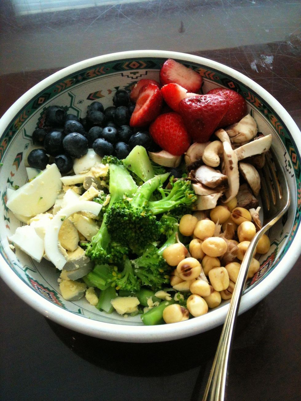 Add a handful if fresh blueberries or strawberries (I like both but I ran out of strawberries ha!)