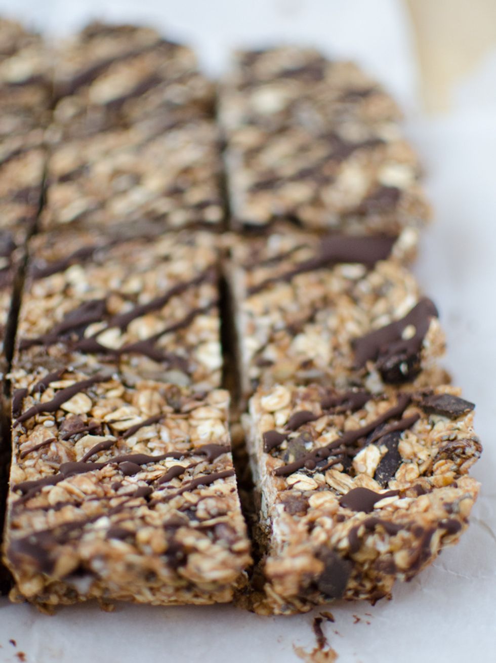Melt together the coconut oil and remaining 2 tbsp. chocolate chips. Whisk until smooth and drizzle over the bars. Freeze for at least 20 minutes until hard.