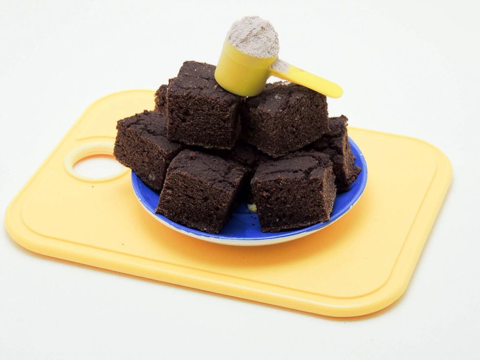 Measure out dry ingredients first, whey, coco flour, cacao powder, 2 packets of stevia