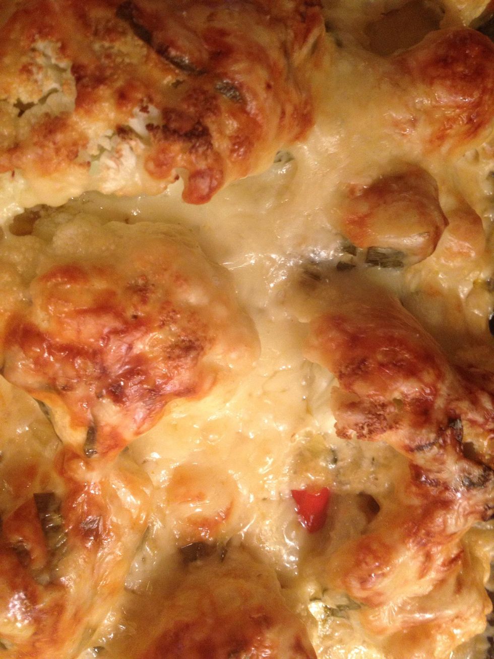 Put a tasty grated cheese over and then in to the oven in 225 C (437F) for 35 minutes.