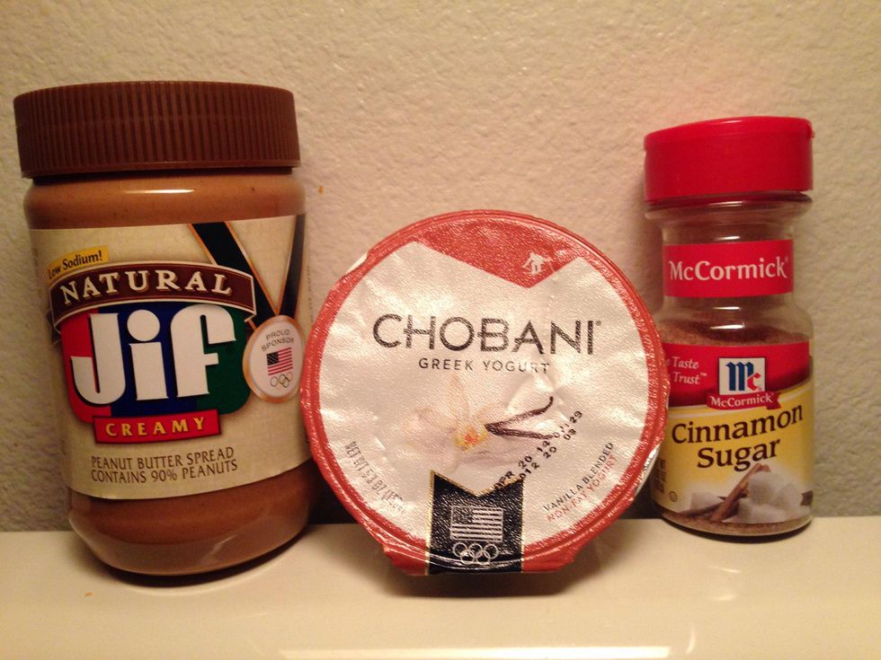 I used cinnamon sugar because I was out of plan cinnamon. Not much a of a calorie difference but good either way! You can also add maple syrup ( 1teaspoon )Mix peanut butter and yogurtAdd cinnamon to tasteNutrition break downCalorie break down