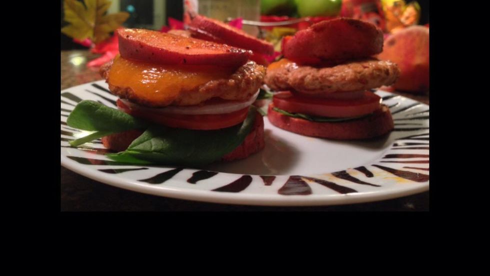 Bon appetit! Add toppings of your choice, I threw in tomatoes, spinach, onions and sriracha sauce! Hope you enjoy the healthiest burger you've ever had! 🍔