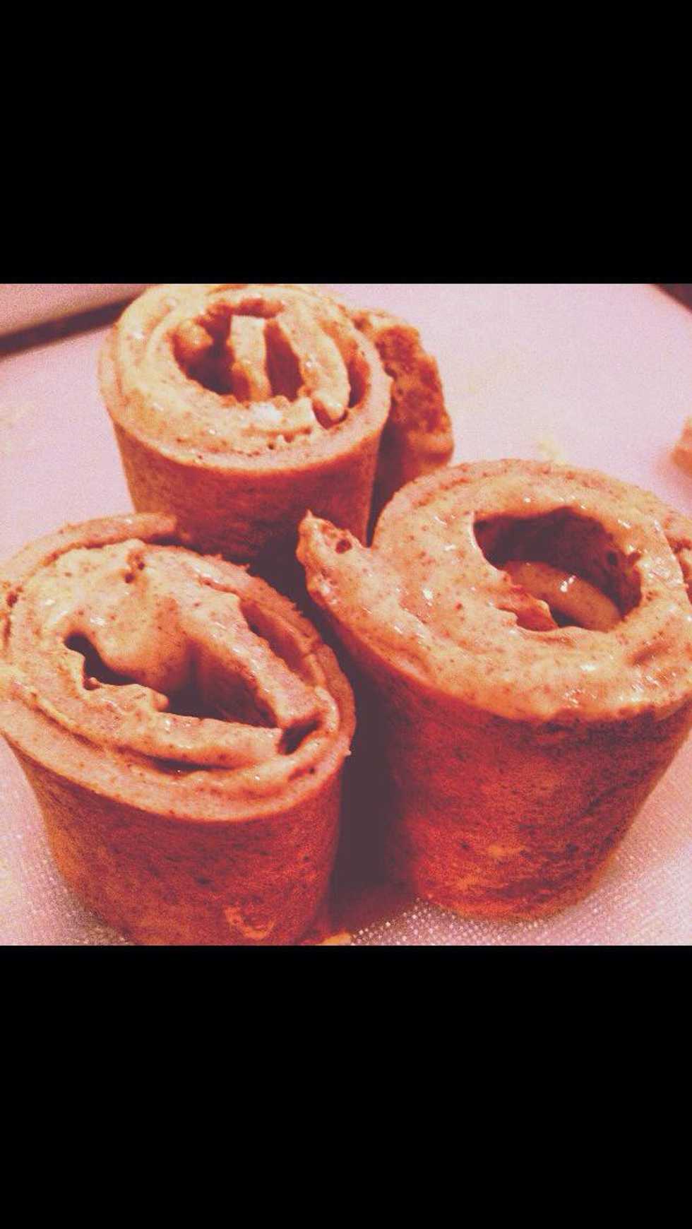 While waiting for the dough/pancake to cool down, make icing: 1/2 scoop vanilla whey, 1 tbs cinnamon, 2 teaspoons almond butter, 1/2 cup greek yogurt