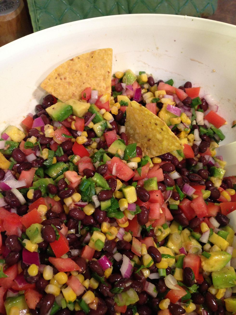 This healthy colorful chunky salsa feeds a crowd and pleases a crowd. Makes a great summer party food served with tortilla chips or Fritoes Scoops. Recipe makes 2 quarts.