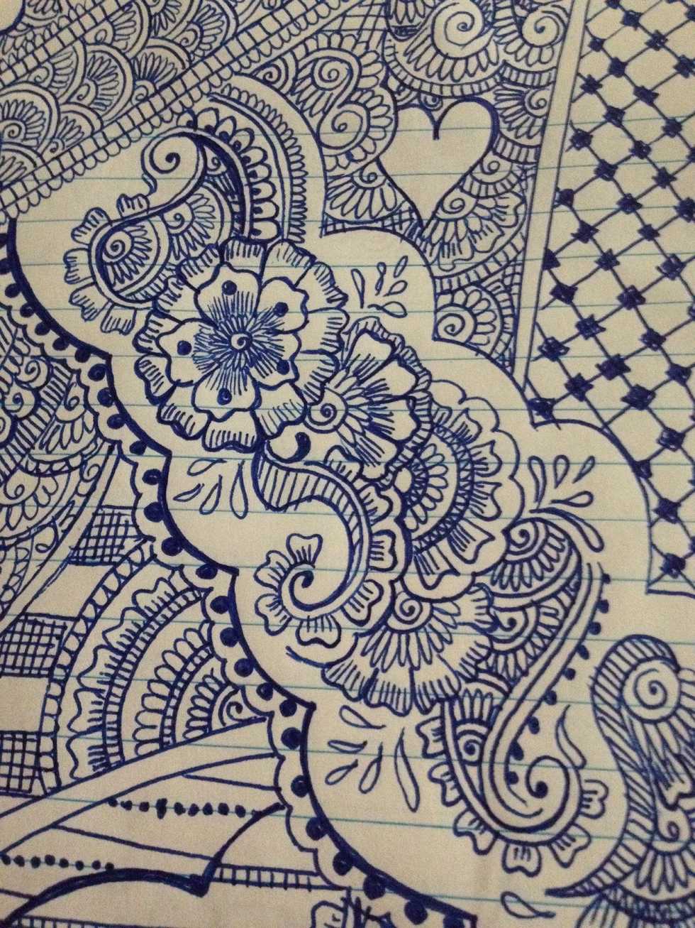 Start with a little swirl. Ink pens work best to define the design more than a regular ballpoint pen.
