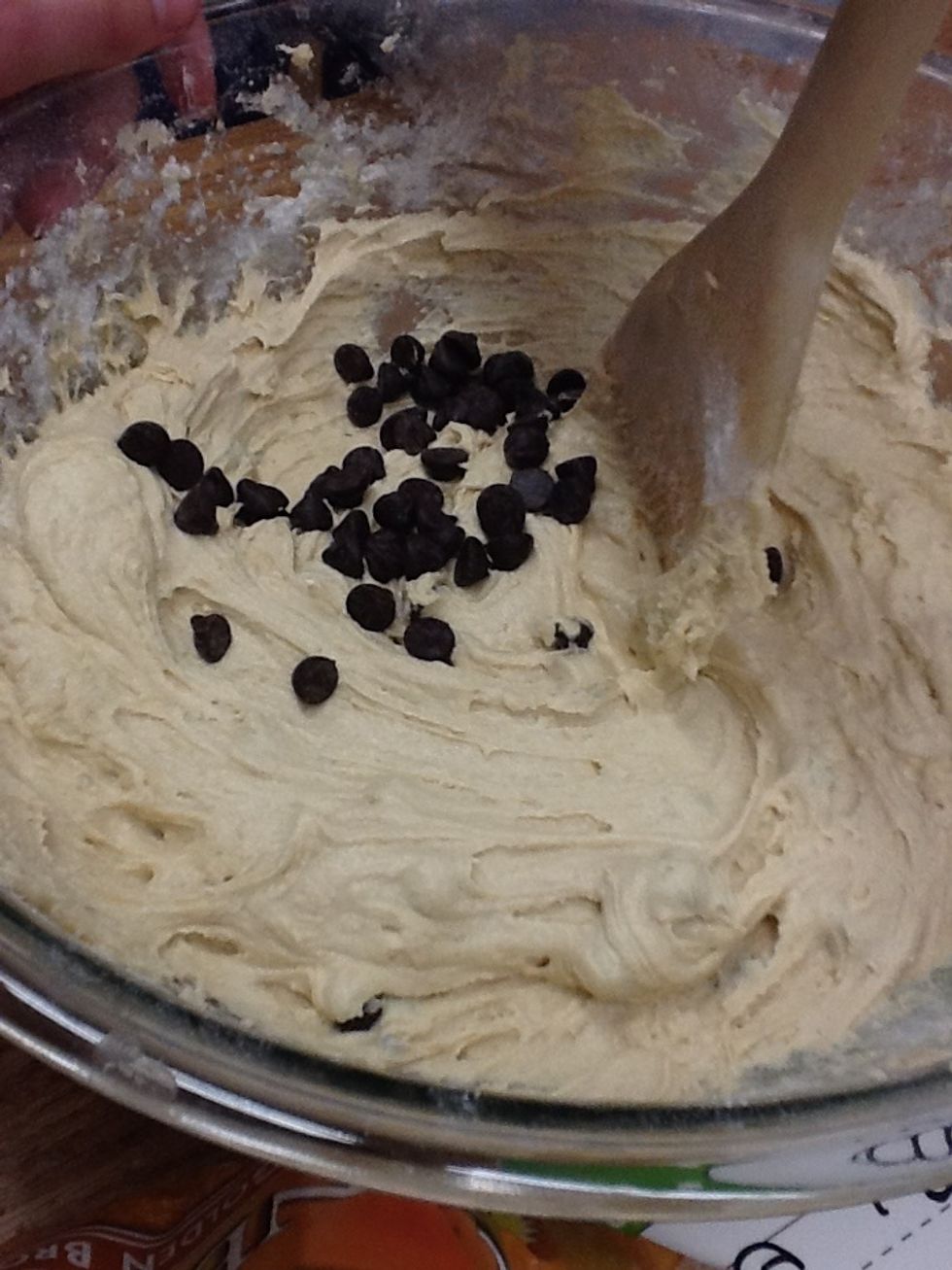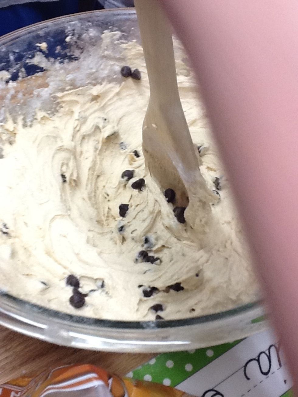 Step 11 Add 2 cups of Hershey's Special Dark Chocolate Chips and stir with wooden spoon.