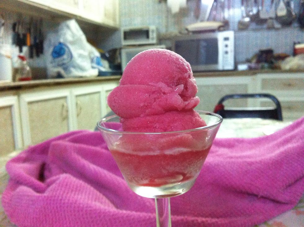If you don't have an ice cream maker, place the sorbet base in a deep plastic container and freeze for an hour. Then put the icy mixture in the food processor or blender and blend. Return to freezer.