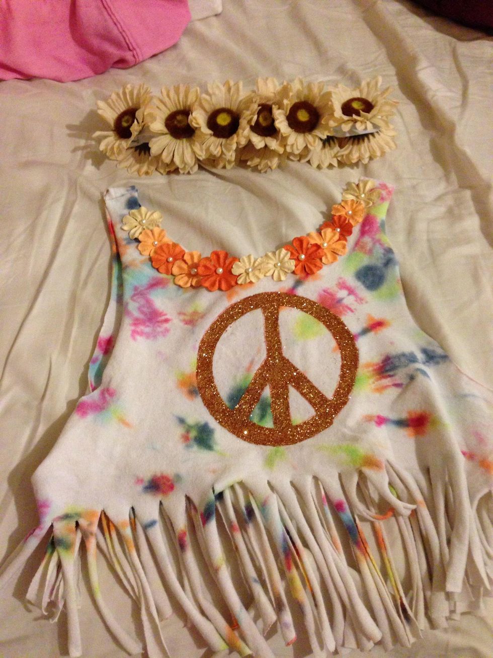 I took an old tied dyed shirt and cut the sleeves and fringed the bottom. I skipped steps showing this but Tutorial for this can be found on YouTube.