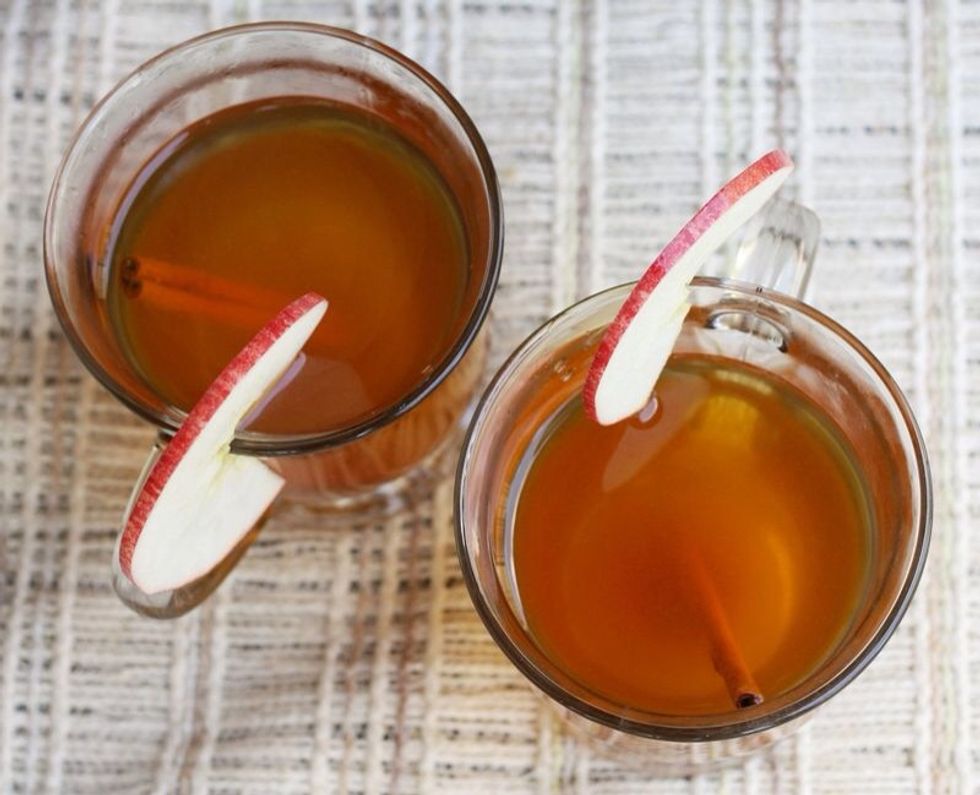 Pour in 5 cups of apple juice.