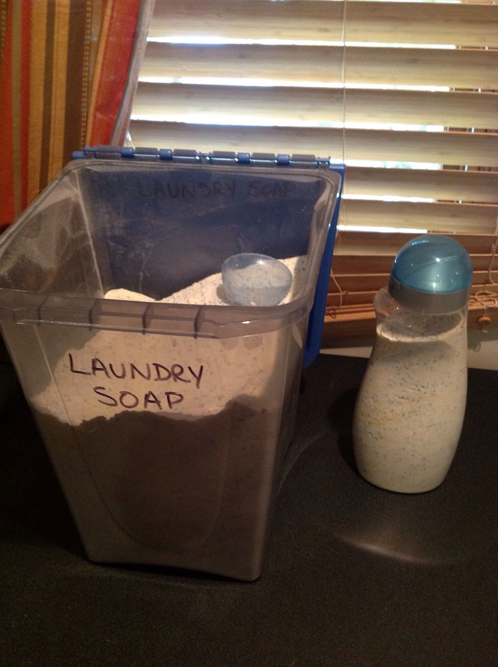 There are lots of recipes for laundry soap on the Internet, feel free to adjust ratios to fit your needs. You can adjust the amount of soap you use per load as well.