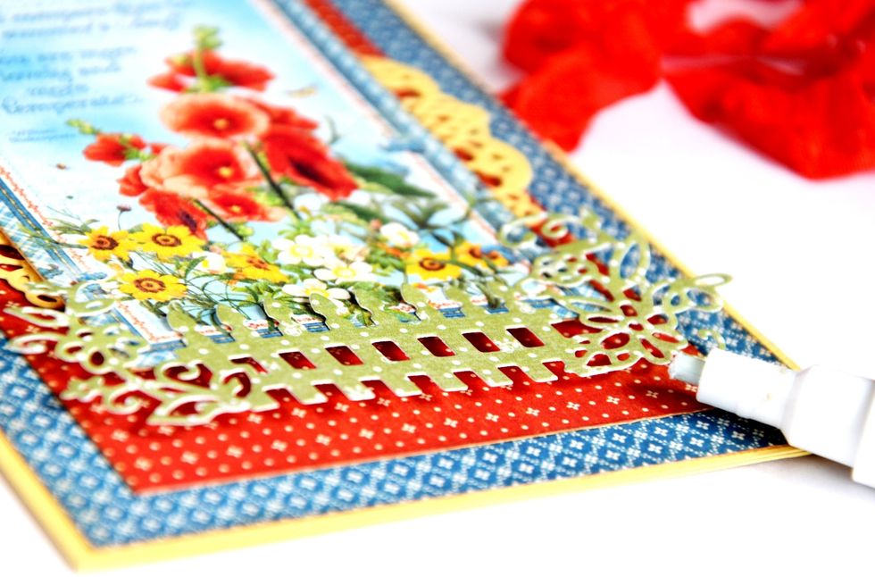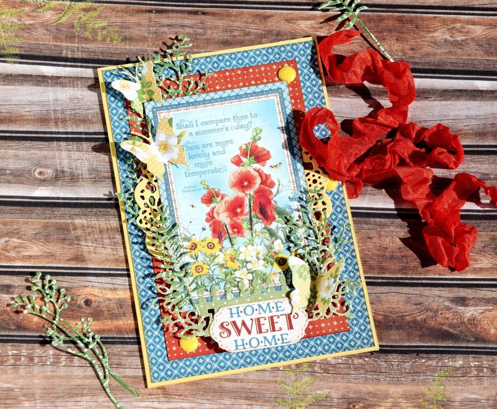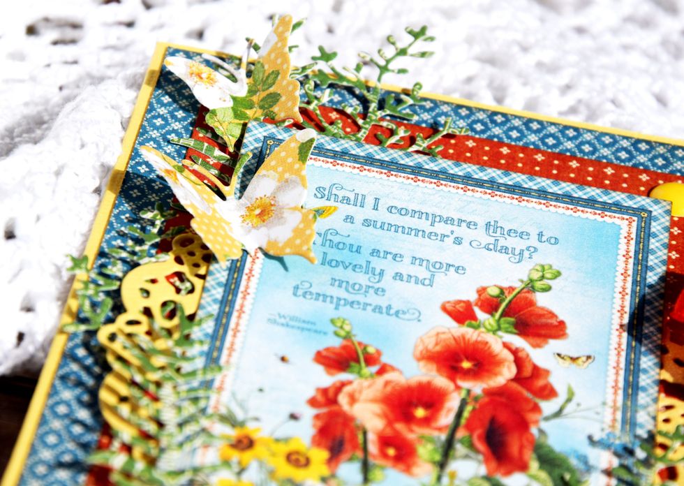 Prepare some die-cuts. With CottageCutz Garden Stems cut the details out with patterned paper. With CottageCutz Tea Time Doily (4x4) cut the details out with cardstock.