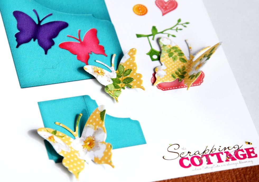 With cut the CottageCutz Fancy Pocket Plus cut the details out with patterned paper.
