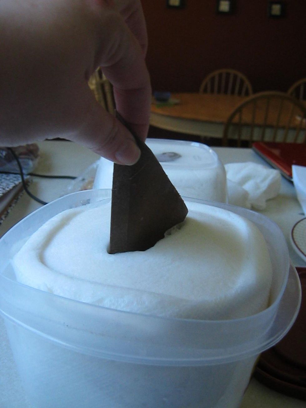 Put paper towel in container.... Leave in cardboard middle .... After 5 mins take paper towel out and flip. Put back in...
