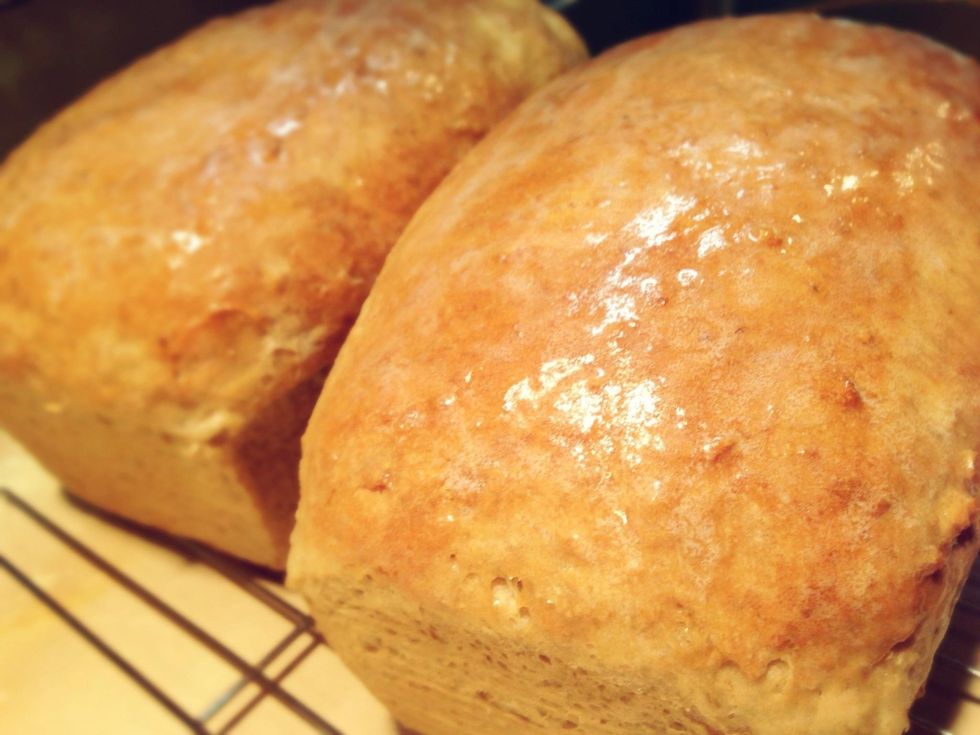 Rub butter over top of loaves and let cool.
