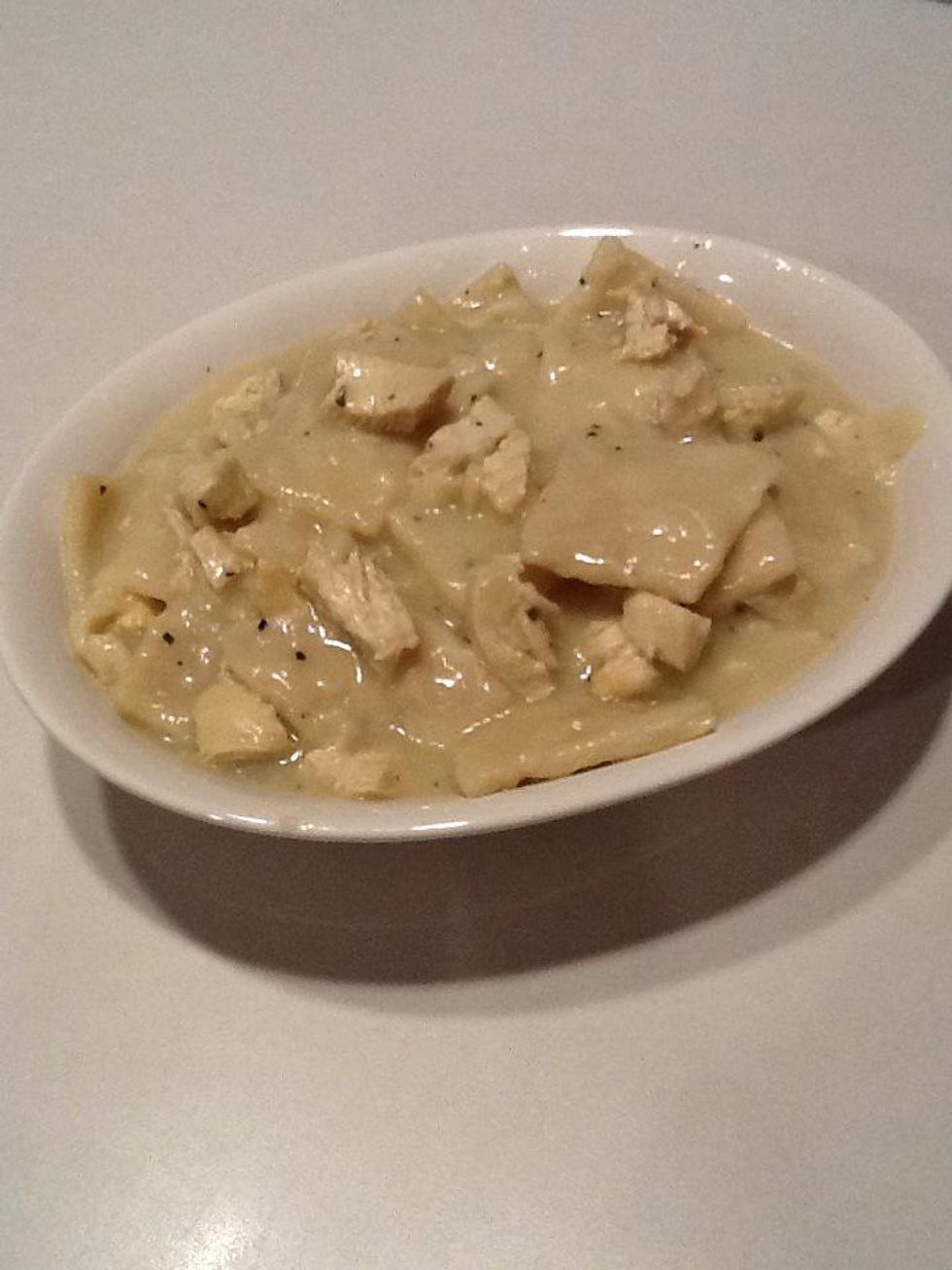 Heat chicken broth to boiling. Gently add dumplings to broth. It's good to have extra flour on the dumplings as this will help thicken the sauce.