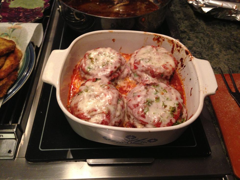 Sauce the bottom of your dish. Tip: Spray the bottom with pan for easier cleanup.