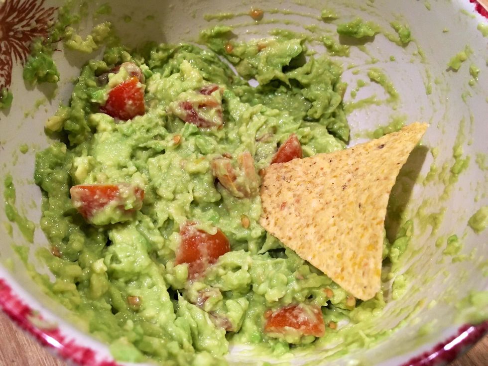 Slice up your AvocadoSlice your limeSlice up your tomatoesMash up your avocado to a chunky pasteDump your tomato in and mixSqueeze just a few drops of lime to make the flavor tangyMix again