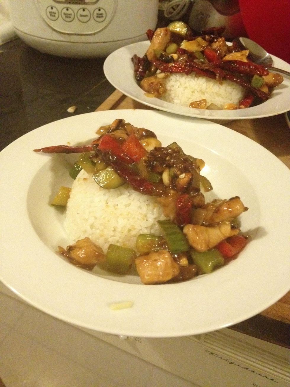 Serve on top of white rice. This works even without the sauce I used in another guide, it taste more spicy and dry compare with the sauce from Asian store.