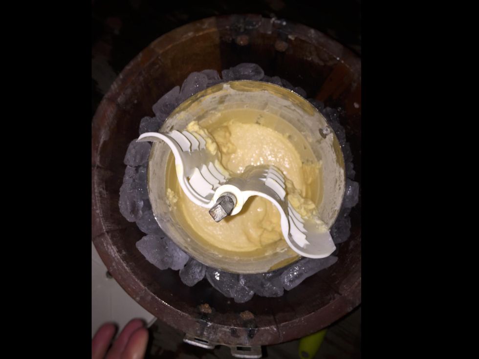 Pour your mixture into the ice cream bucket and put on the lid and crank.