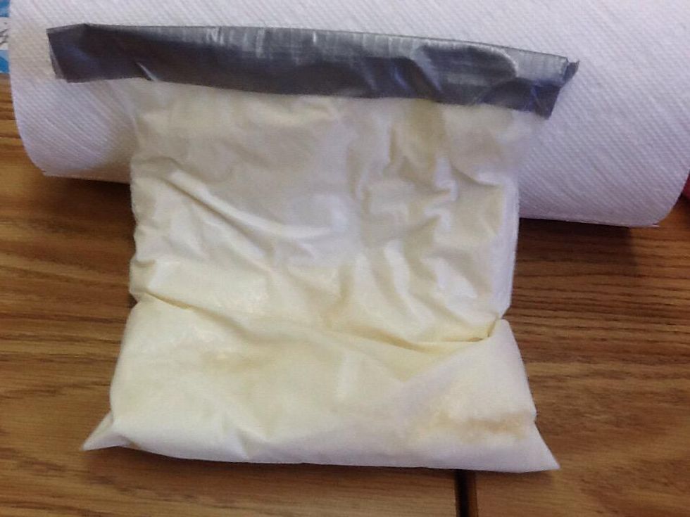 Next, put one cup of milk in the bag.