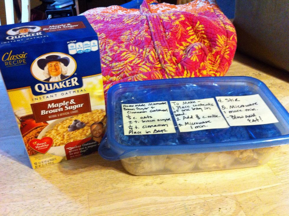 All you need is ..Oats..(any kind will work), mine is Old Fashioned Whole Grain, brown sugar..(could replace with white sugar if desire), and cinnamon..(which is optional of course), and baggies.