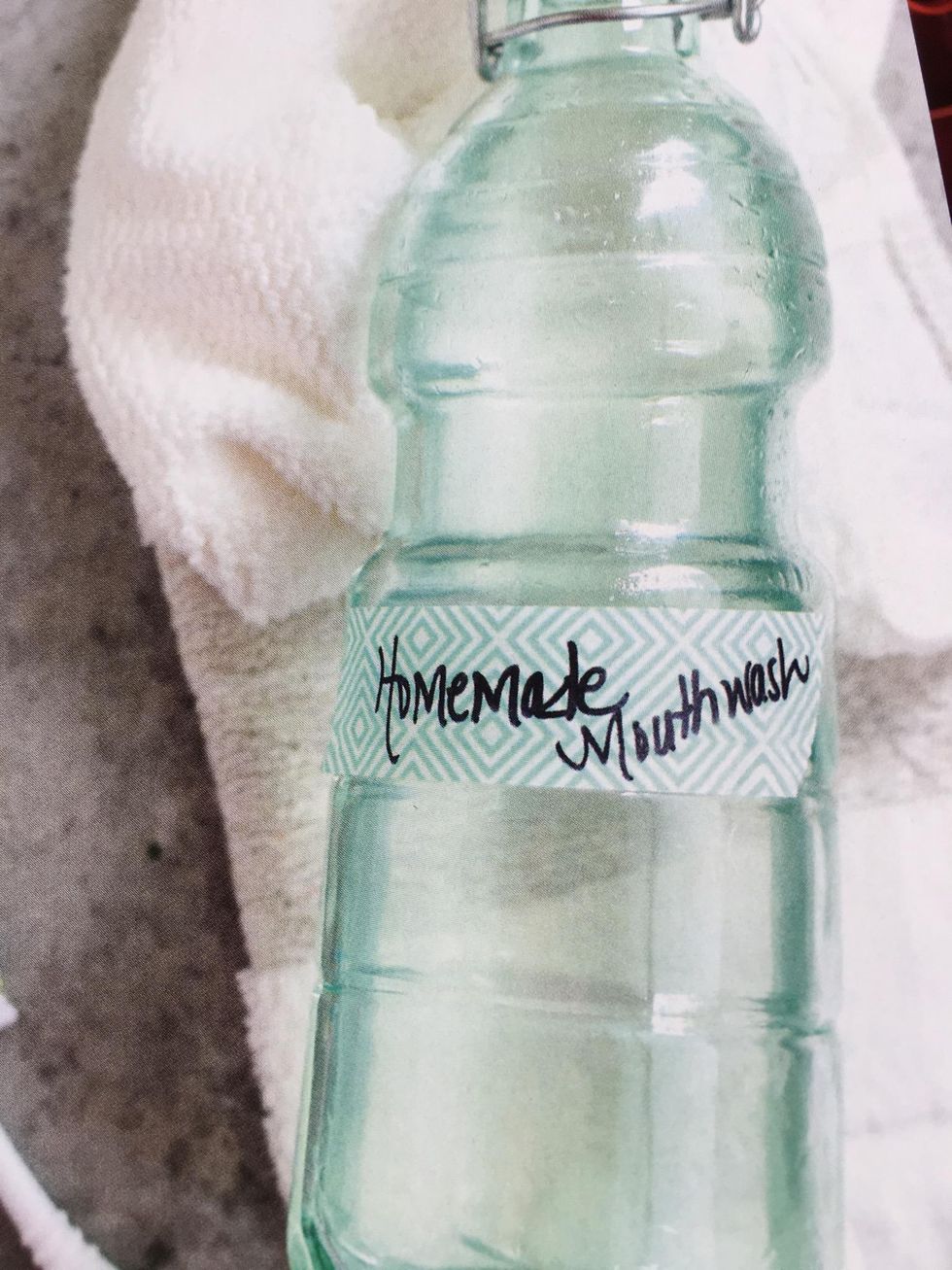 Add all the ingredients into a bottle. Seal the bottle and shake to combine. To use gently shake the bottle and pour a small amount of mouthwash into a cup. Swish it in your mouth then spit