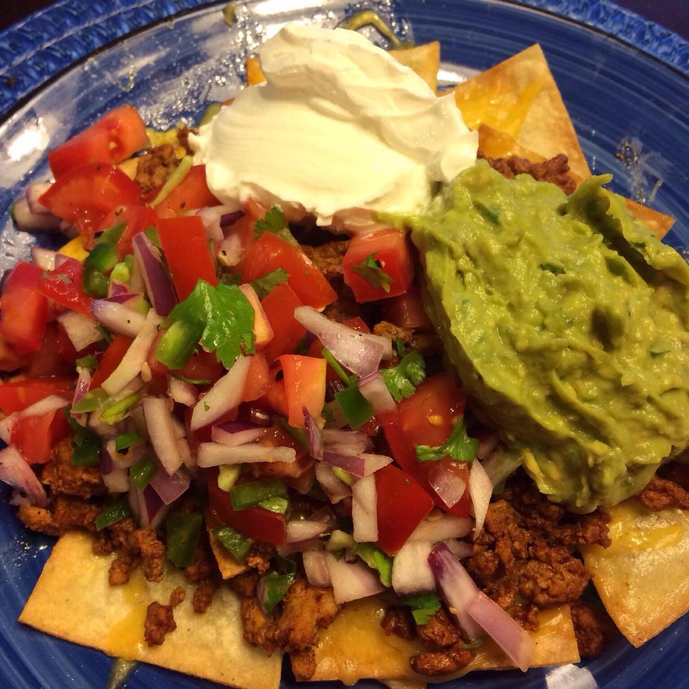 Once your cheese is melted, garnish with your salsa, guacamole and a dollop of sour cream. I like mine spicy so I add extra jalapeño, yum! 😂😝