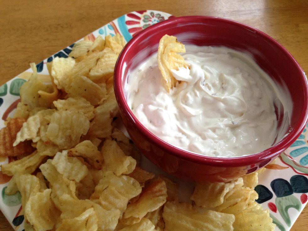 Dice onion.Sauté onion to carmelized. About 15-20 minutes.Add sour cream.Add mayo.Add garlic powder.Add salt.Add ground white pepper.Add onion and mix. Refrigerate.Done!