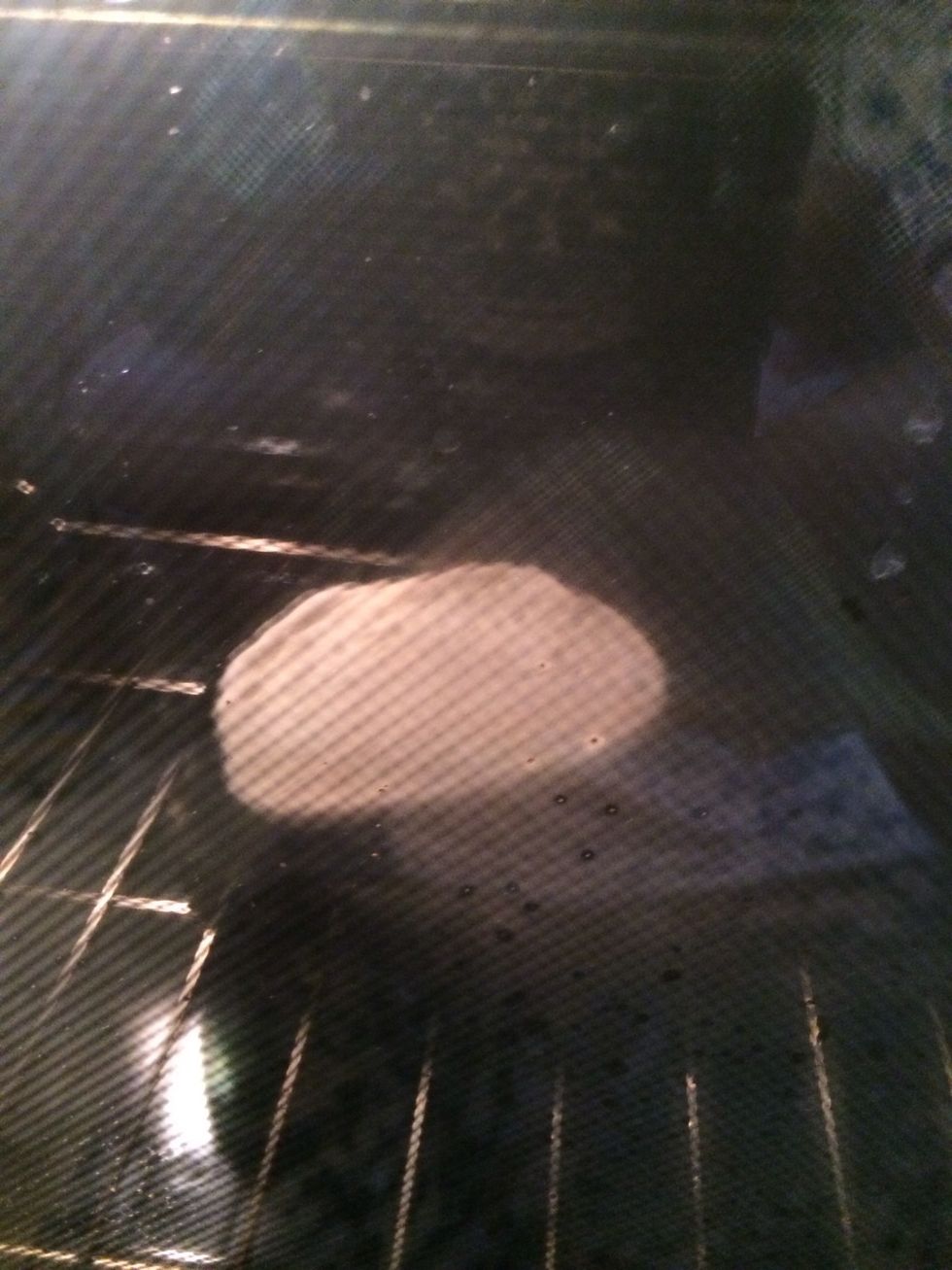 Cover it with saran wrap. Put it in a warm place so it can rise. I put it in my oven with the light on. Let it rise for 90 minutes.