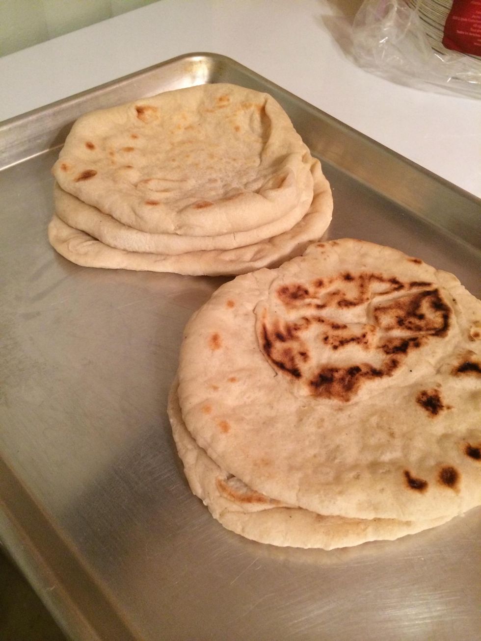 These are the pita breads i made. The ones to the left were made in the oven and the ones to the right on the stove top. Either way they were delicious . enjoy