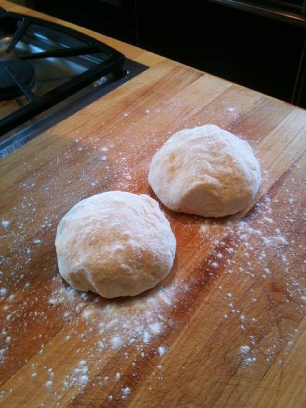 Here is a guide of how I make pizza dough. This recipe makes 2 large thin crust pizzas. I discovered this recipe in Nova Scotia, Canada. Enjoy!